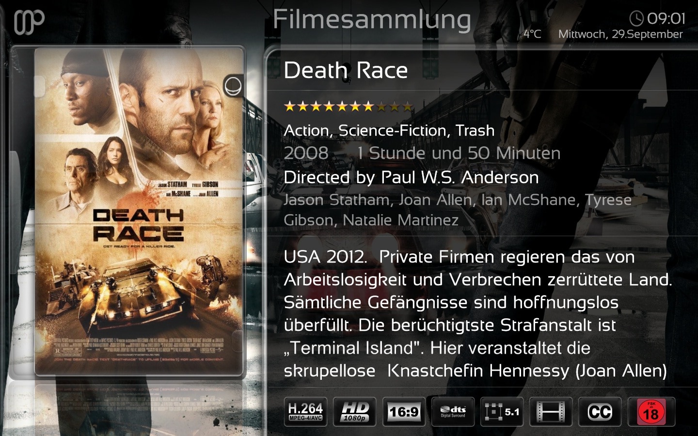 Hi, das mit der Transparenz hat gut geklappt. Sowohl mit Skin Cache leeren als auch mit colordiffuse. Ist jetzt so wie ichs gerne hätte. Mal so aus Interesse: Wie hast du die Spiegelung in der oberen rechten Ecke von dem Cover wegbekommen? Hast du einen anderen Rahmen verwendet? Meine Photoshop-Kenntnisse sind zwar auch nicht erwähnenswert, aber um aus zwei Flaggen eine zu machen, würde es noch reichen. Habe gestern nochmal im englischen Moving Pictures Forum wegen dem Problem gepostet (https://forum.team-mediaportal.com/moving-pictures-284/create-subfield-language-item-database-87290/). Wenn das nichts Brauchbares ergibt, dann werden neue Flaggen gehisst. Passe momentan noch den Skin für mein MPTV-Series-Plugin an. Da sind die Dateien und Hierarchien aber leider um einiges unübersichtlicher als bei Moving Pictures finde ich. Man bräuchte mal so eine Übersicht, was da welche Datei macht.