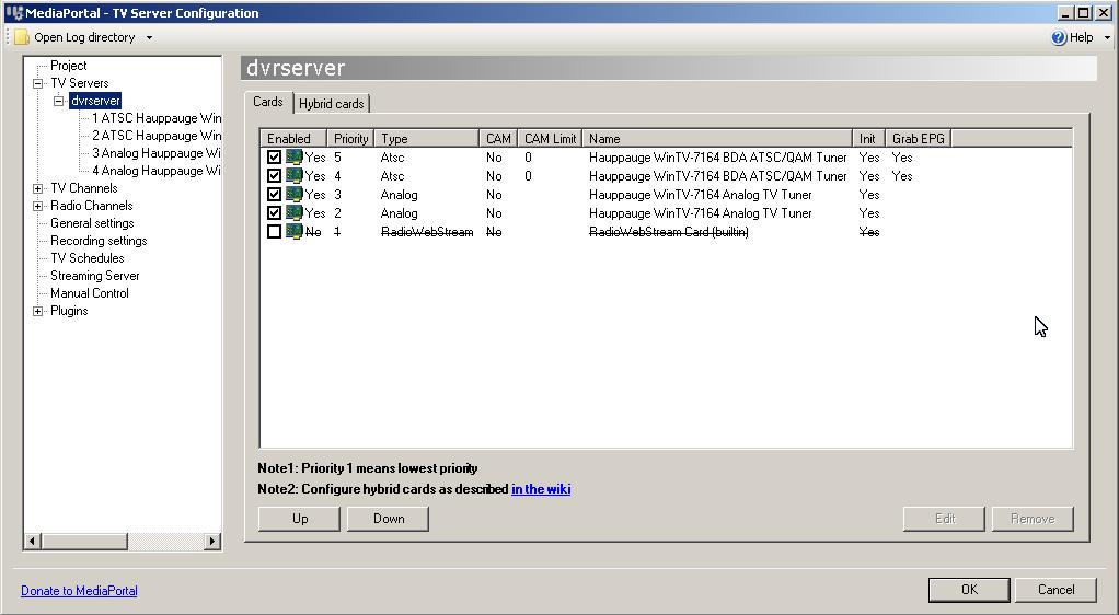 So it's really just a trial and error, which is hard to keep straight, especially because MediaPortal freezes instead of just giving an error while trying to use the same card for both connections, go figure. Also I'd like to know the optimal priority settings for this.