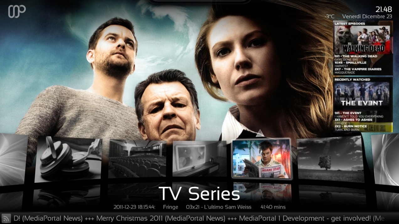 12 rows tvguide isn't working (probably not compatible with mp 1.3, and I have the issue again that if I go to the TV from the main menu, the left menu is collapsed (it used to be visible so I immediately can select tv guide).