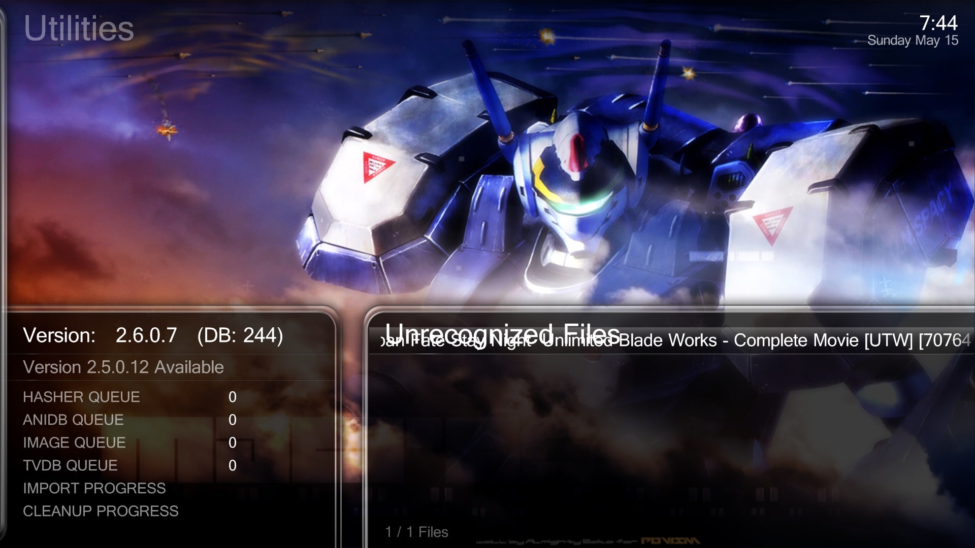 The error is in the unrecognized file section (see screenshot). I was wondering if you can show the fanart and info for the latest added anime in the homescreen, like moving pictures/tvseries/fotos/music (although music only show info, no fanart).