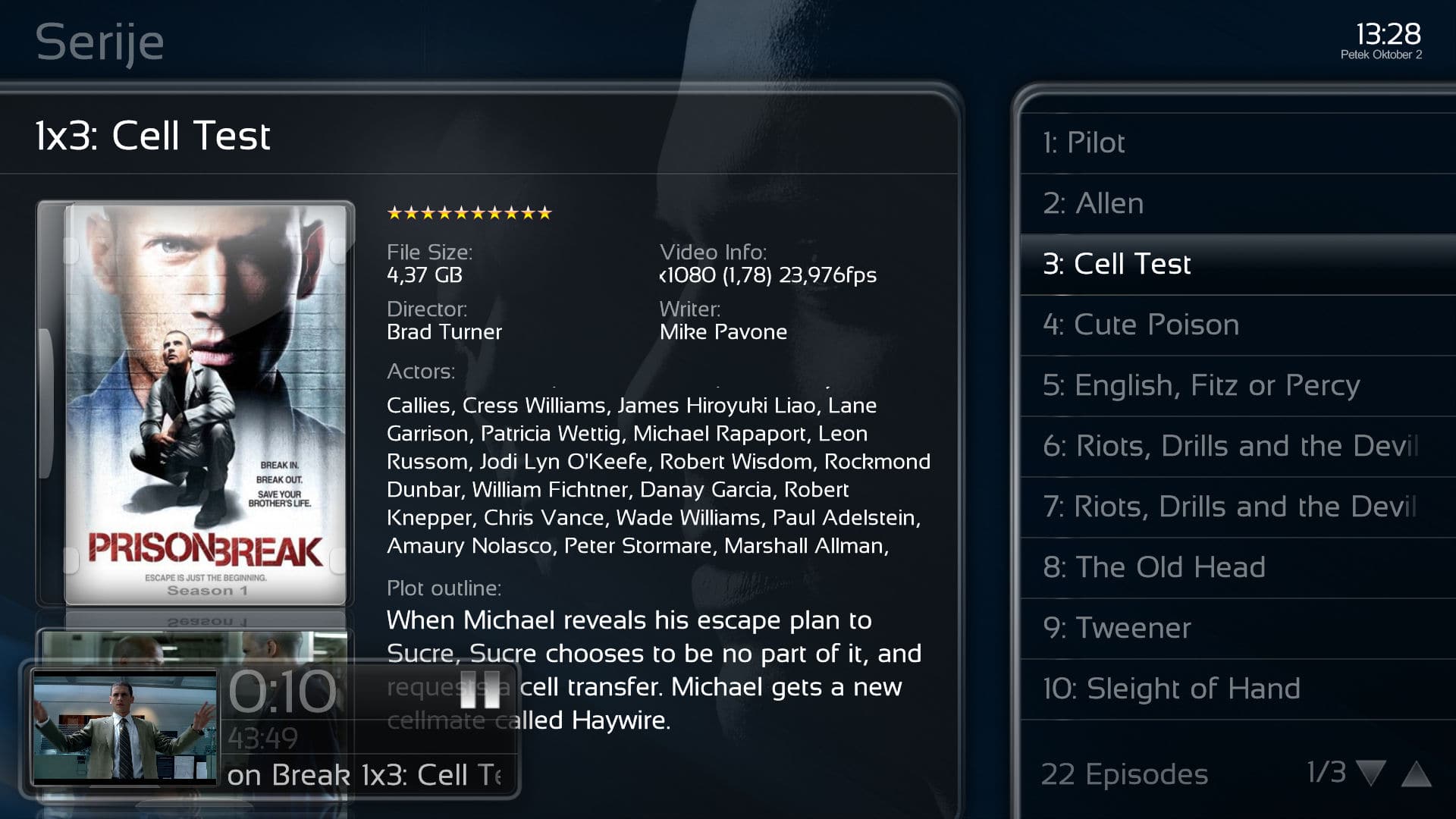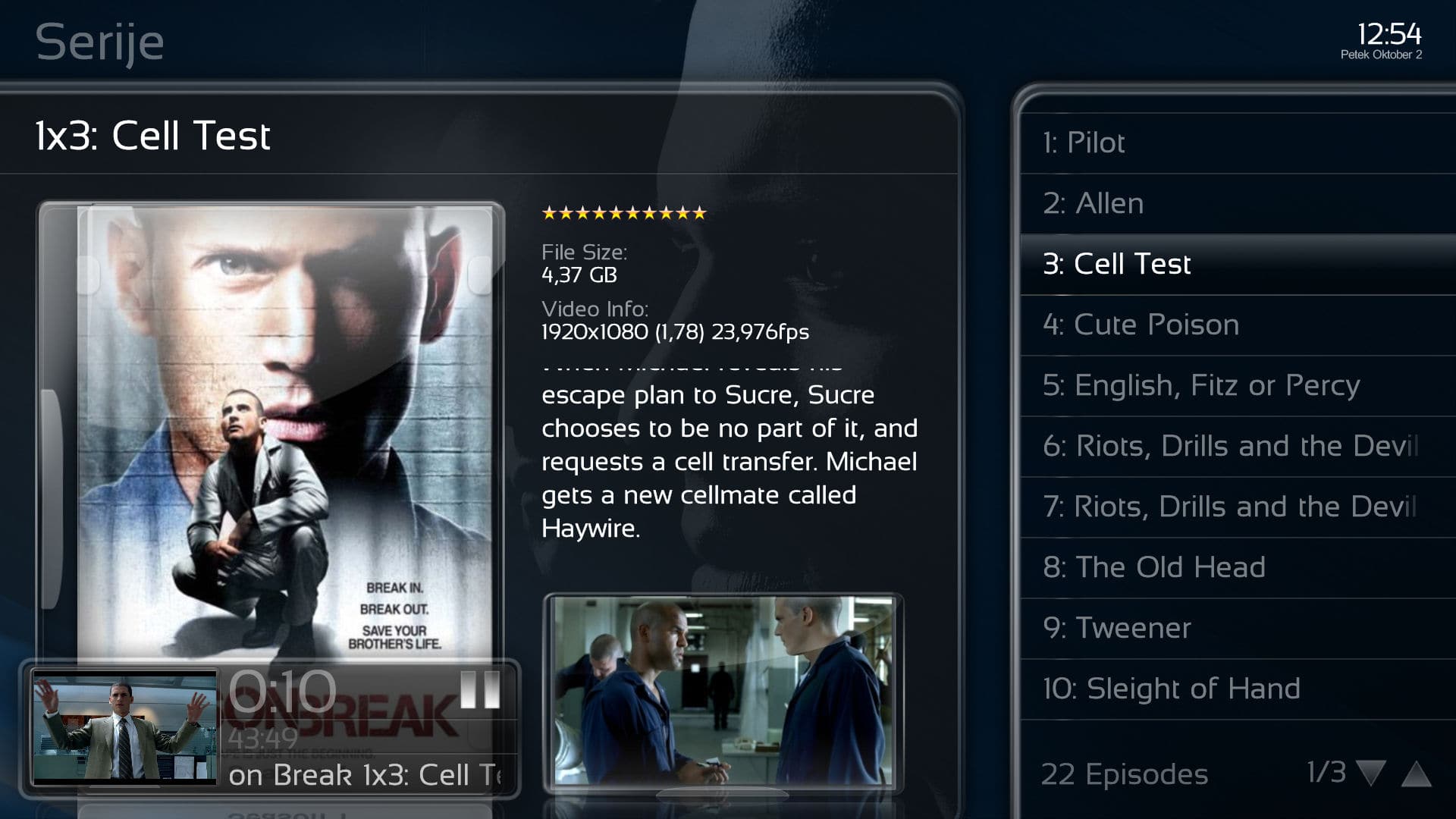 When you're in episode view while playing tv-series, the thumb and summary are gone.