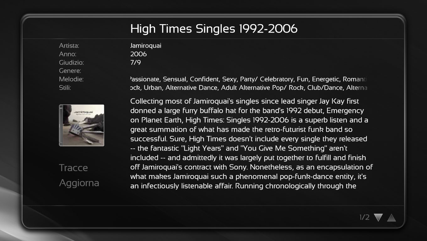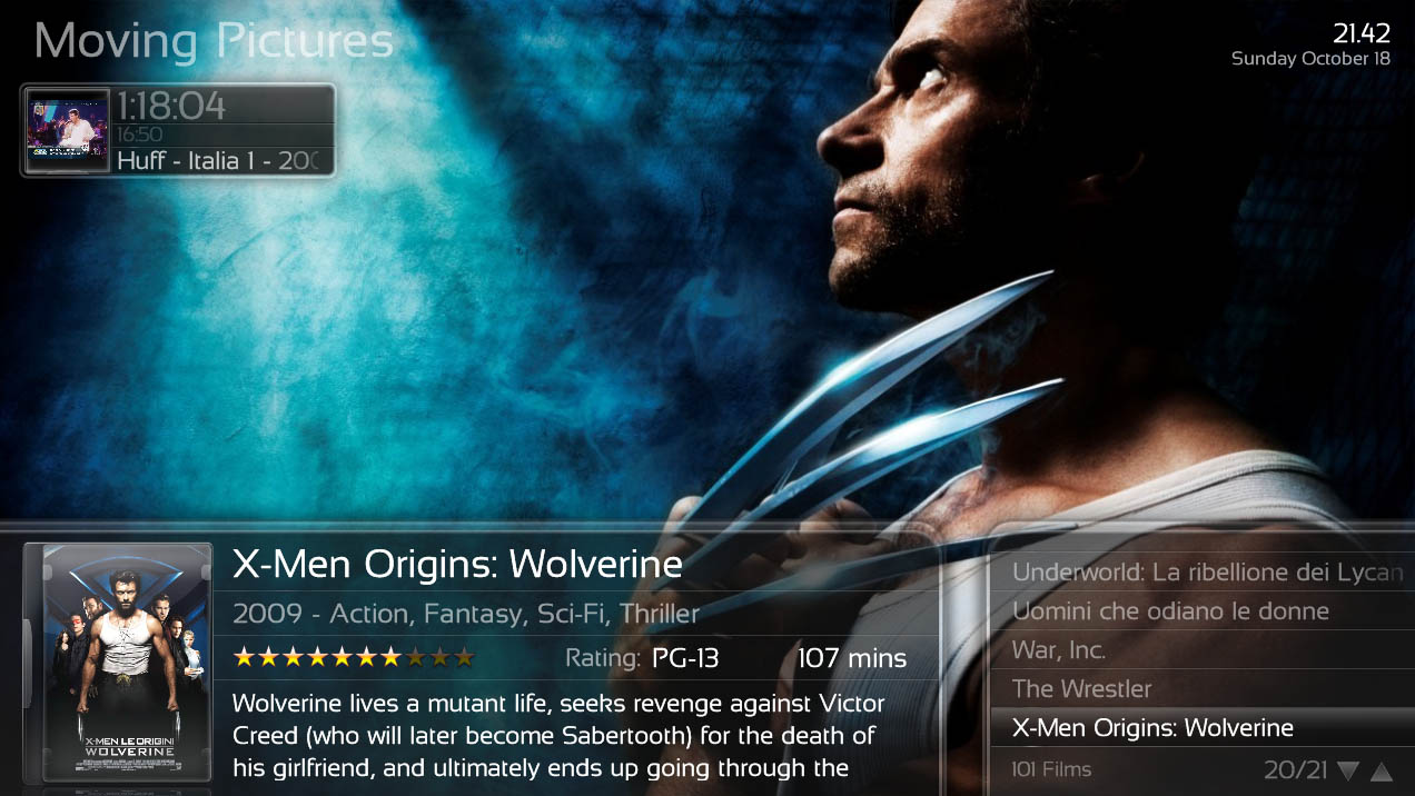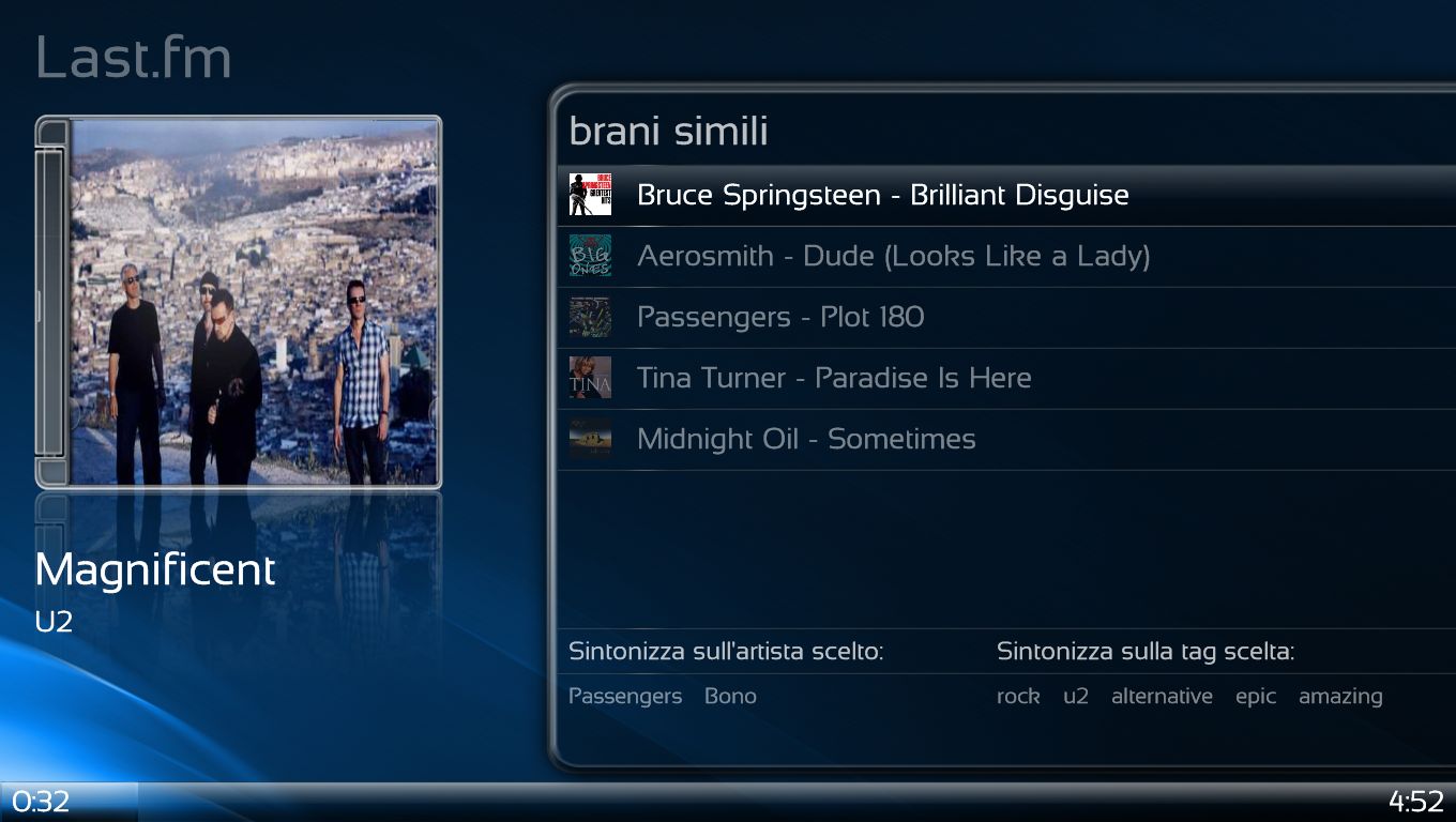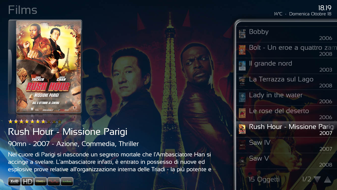 • 1.1.0 - 27/08/2009 - Added support for: MyFilms, MyTrailers, RadioTime. Completed support for MyVideos (thanks to mamachan). Completely revamped Dialogs (thanks to morpheus_xx and ChriZ). Fixed several issues in: MyLyrics (thanks to mackey), Weather (thanks to morpheus_xx), Volume Osd, Tv section. Speeded up transitions between screens (thanks to morpheus_xx and ChriZ).
