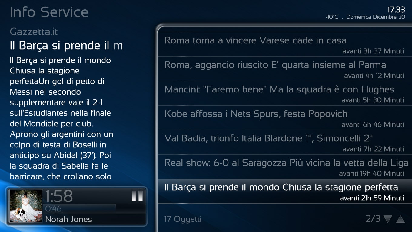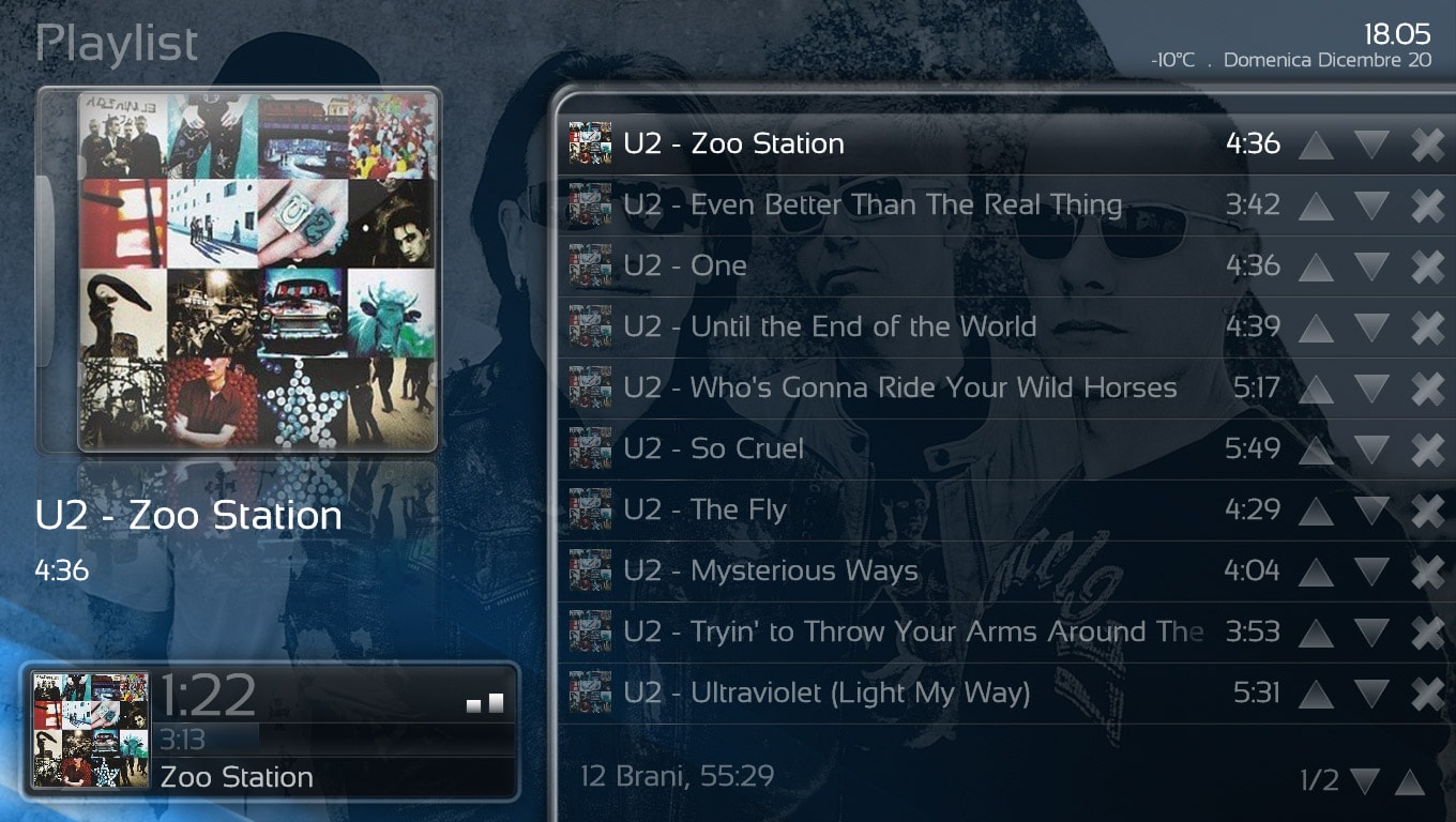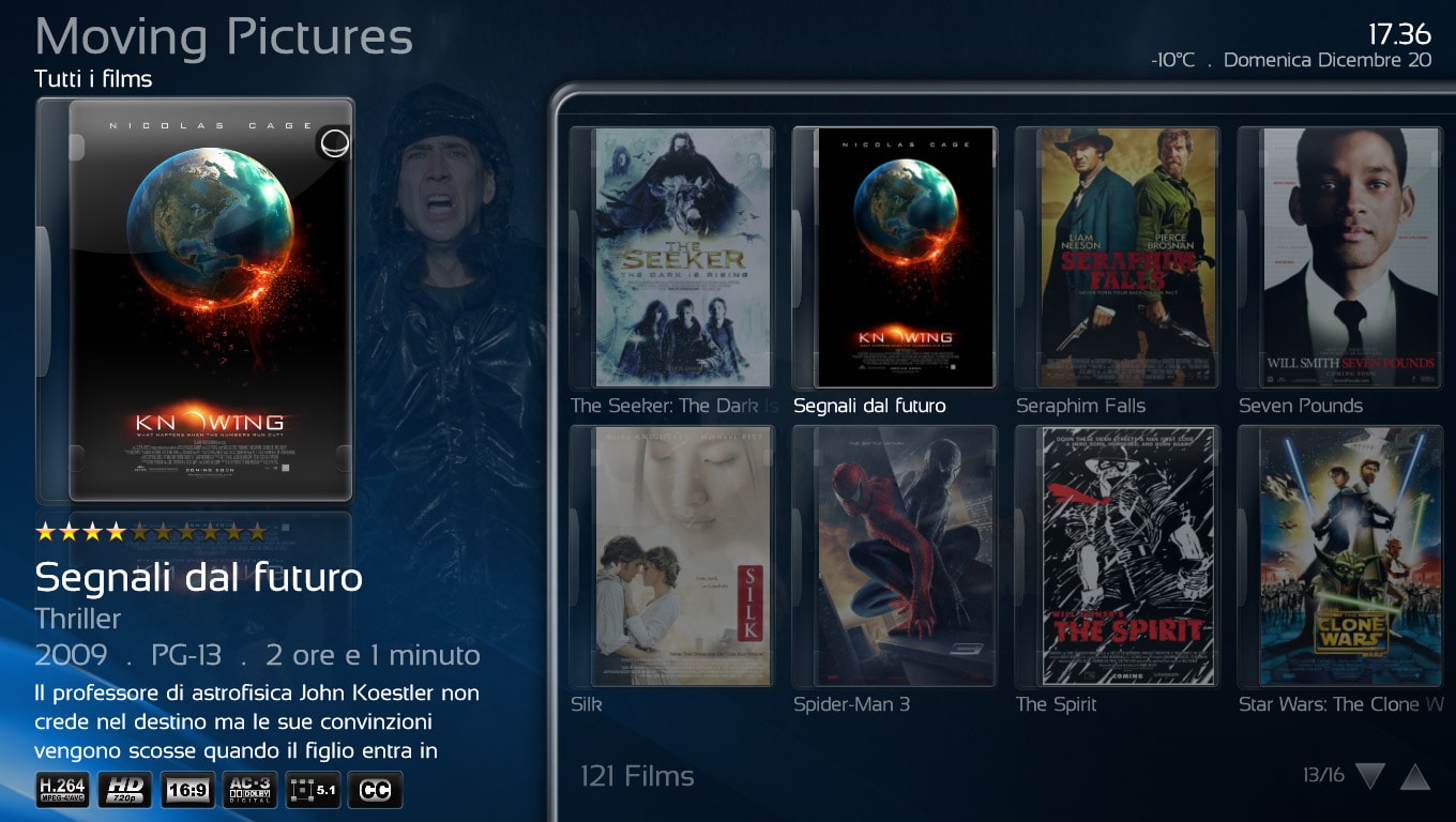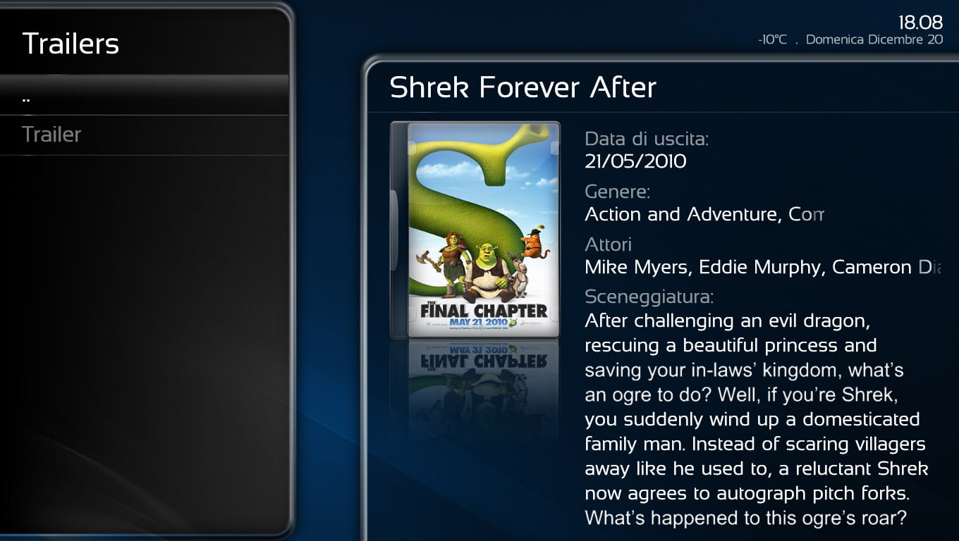 - 1.1.0 - 27/08/2009 - Added support for: MyFilms, MyTrailers, RadioTime. Completed support for MyVideos (thanks to mamachan). Completely revamped Dialogs (thanks to morpheus_xx and ChriZ). Fixed several issues in: MyLyrics (thanks to mackey), Weather (thanks to morpheus_xx), Volume Osd, Tv section. Speeded up transitions between screens (thanks to morpheus_xx and ChriZ).