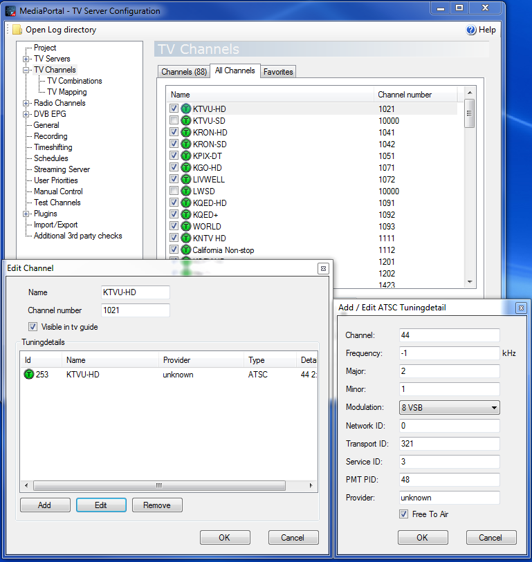 As a long-term user I stumbled across this when a local broadcaster changed their RF number. Specifically they had been on RF-49 and moved to RF-48. This is a simple adjustment made by editing the TV Channel, right? YES, it should be and I did this several years back when RF-59 moved to RF-19... a simple change and hit OK. Not so this time. When I attempted to save the change I got a pop-up saying I had an invalid frequency! This was a new error for me and I thought I should call it to your attention. Interestingly enough I wasn't editing that field, instead the RF field and, the values in the editable window do not list frequency values (even after scanning) but the "checking" that's done (when I hit the OK button) keep me from continuing. As for me, I had to reperform a full ATSC scan to detect the new RF-48 station.