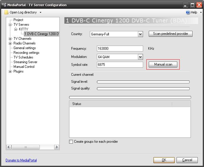 Ich würde gerne einige Sender manuell hinzufügen, da ich die genauen Frequenzen kenne. Wenn ich dann in der TVServerconifg auf "manual scan" klicke, wird der Scan gestartet aber nichts weiter passiert. In der error.log fand ich diesen Eintrag.