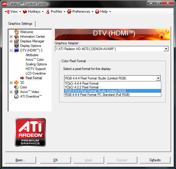 - Set Pixel Format in CCC to "RGB 4:4:4 Studio Limited"
