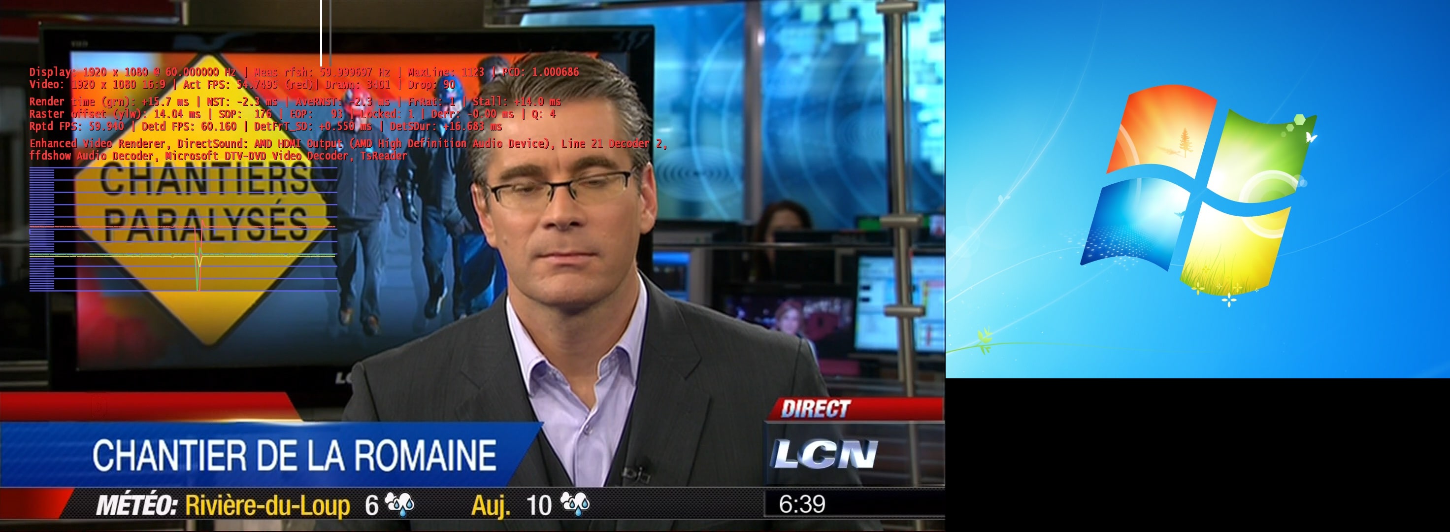 After this happens, the framerate drops to 55.75 something, then goes back to 59.99... then it studders and this all start again.