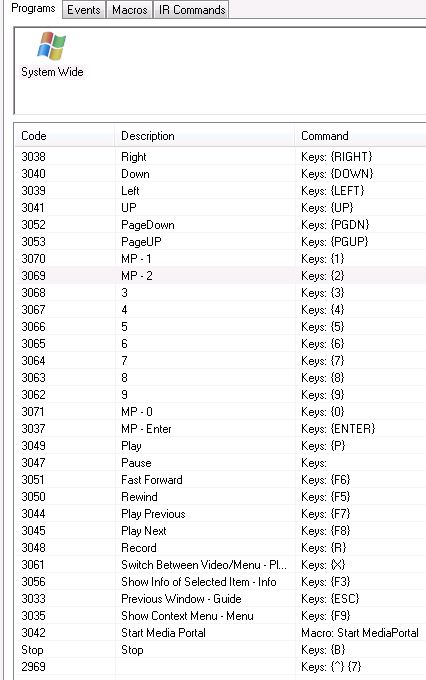 1: Can anyone help me out about changing the channels through the guide and typing in say 202 which takes me to CNN? I can do that in TV Blaster when I could get in and I still can change channels in TVServer Setup but once Media Portal comes up nothing happens i can do jack except for go down turn the TV part on, back out, stop it or pause it which they work. I am using MCE commands and using the control system wide in Translator which has been very good to me. I didn't know if someone could help me out.
