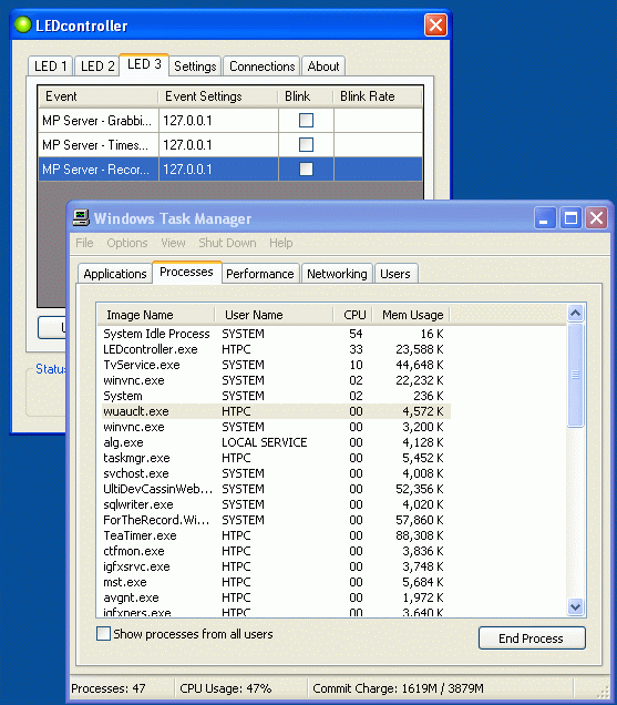 First, the resource use of COMswitch (and now LEDcontroller) seems very high, especially the CPU usage. See the attached Task Manager snapshot - in my case CPU continually hovers around 2-4% all the time! Is this because it's continually polling for state changes? If so, is it possible to maybe add a config value to extend the polling interval? I don't mind if the LED takes an extra 5 secs to turn on/off[As a side note, the memory usage seems high too, but not so important IMO]