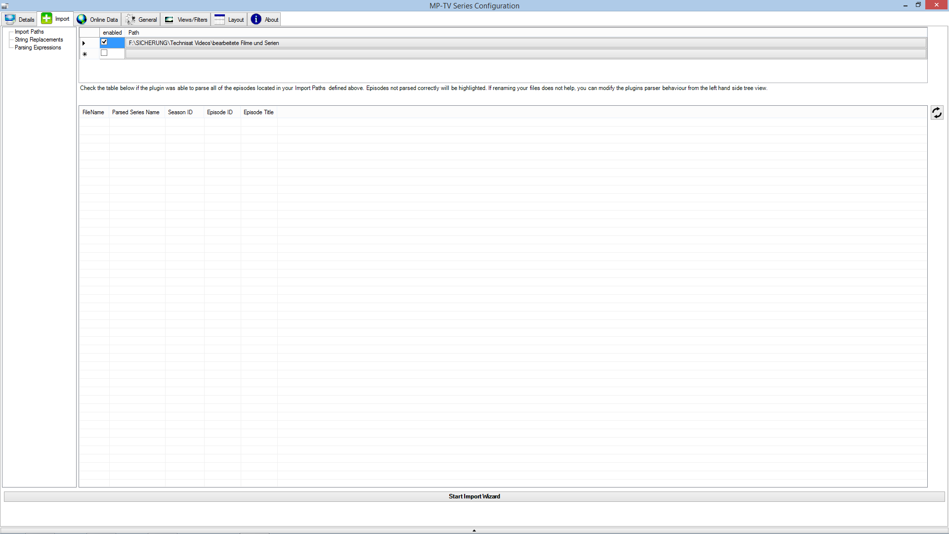 Versuch doch mal den Import außerhalb der Mediaportal-GUI: Mediaportal-Configuration - Plugins - MP-TV Series - Confighier der Screenshot: Ist das vielleicht, weil die Serie mit dem gleichen Namen anfängt: "Raumschiff Enterprise" und "Raumschiff Enterprise - Das nächste Jahrhundert" ?
