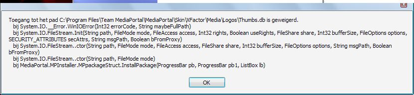 I reinstalled it now to reproduce the error message, but I am not sure if it is the same error because this one complains about not being able to access a thumbs.db file. I checked the file and it does exist... why would the installer want to do anything with a .db file?
