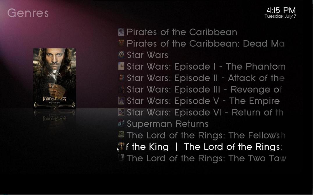 Hi, is anyone else having a problem with overlapping text in basic home menu? I'm running at resoultion of 1440 x 900 and the horizontal menu items all overlap each other, I'll post a screen shot later. I must say though this is a REALLY good skin with excellent potential!! I do agree with others though that the covers are a bit small in Moving Pictures, in tumbnail view would be nice to have a bigger difference between selected/unselected covers as not that easy to tell currently what's selected.